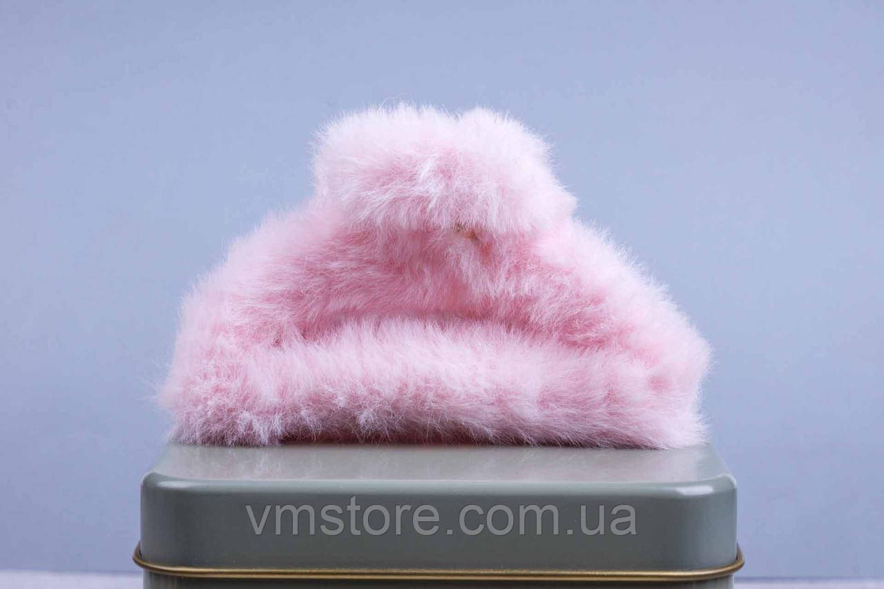 Крабик для волосся, шпилька краб із хутром, ніжно-рожевий