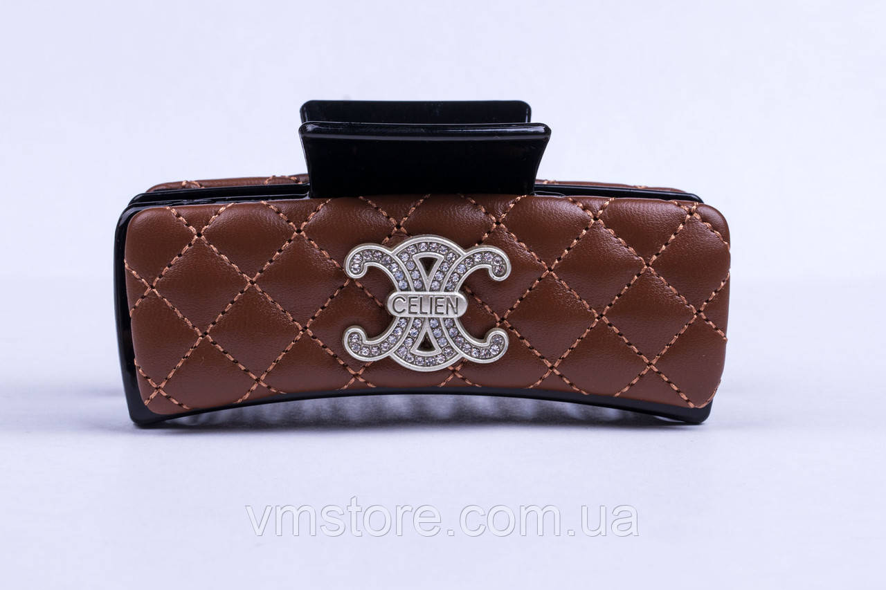 Краб для волосся, великий і широкий, ідеально підійде для довгого та густого волосся. Крабик пластиковий, оздоблення м'яка, якісна екошкіра, з металевою фурнітурою. Зубчики крабіка напівкругом, завдяки цьому зручно сідає по голові. Така шпилька прикрасить найпростішу щоденну зачіску та додасть їй делікатну особливість.